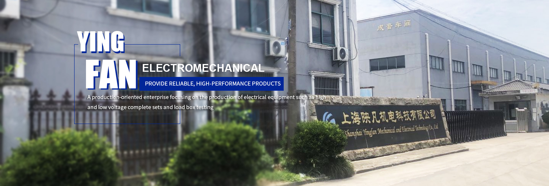 Shanghai Yingfan Electromechanical Technology Co., Ltd. is a production-oriented enterprise that produces electrical equipment such as high and low voltage complete sets and load box testing, with an existing registered capital of 108 million yuan. The company is located in Xinshen Industrial Zone, Zhelin Town, Fengxian District, Shanghai. The company has a total construction area of more than 20,000 square meters, and has large-scale standardized factory buildings and comprehensive office buildings.